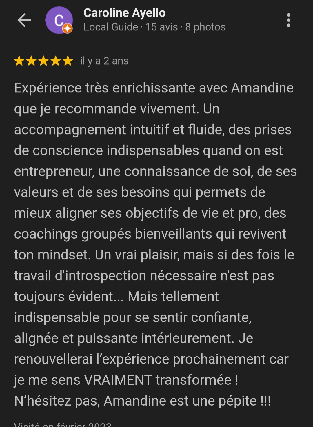 De plus, l’accompagnement se fait à ton rythme (oui je vais quand même te pousser un peu mais jamais au-delà de tes « vraies » limites).
